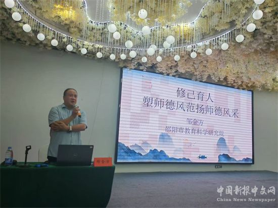 上午,邵陽市教育科學(xué)研究院副院長鄒金方院長親臨現(xiàn)場(chǎng),為全體老師帶來了一場(chǎng)精彩絕倫的講座。鄒院長以其淵博的學(xué)識(shí)和豐富的經(jīng)驗(yàn),深深吸引著在座的每一位教師。全員們?nèi)褙炞⒌赜眯鸟雎?,那專注的神情仿佛在告訴世人,他們對(duì)知識(shí)的渴望是如此強(qiáng)烈。老師們認(rèn)真學(xué)習(xí),手中的筆在筆記本上沙沙作響,邊學(xué)邊記錄著每一個(gè)重要的知識(shí)點(diǎn),他們深知篤學(xué)慎行的道理,明白只有不斷學(xué)習(xí)、不斷積累,才能更好地為學(xué)生的成長保駕護(hù)航。鄒院長深刻解讀了教師勞動(dòng)的特點(diǎn)和教師職業(yè)的內(nèi)涵,他的話語如同一盞明燈,照亮了老師們前行的道路。鄒院長還總結(jié)出教師職業(yè)有三界,這一深刻的見解讓老師們陷入了沉思,他們深刻意識(shí)到自己肩負(fù)的社會(huì)重托,紛紛暗下決心,要努力成為習(xí)近平總書記所寄望的“大先生”,為培養(yǎng)德智體美勞全面發(fā)展的社會(huì)主義建設(shè)者和接班人貢獻(xiàn)自己的力量。
