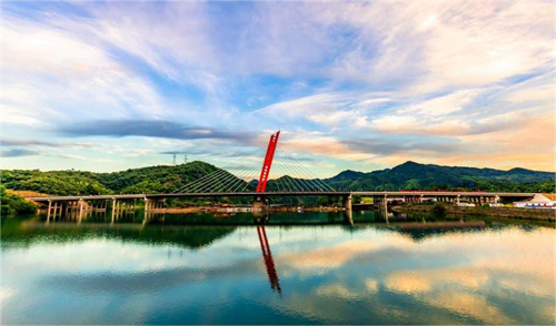 今日金寨縣梅山老城區(qū)、橫跨史河的新大橋。