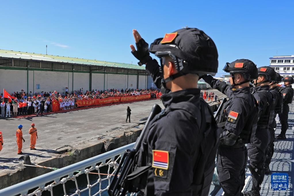 當(dāng)?shù)貢r間9時許,懸掛著中馬兩國國旗的編隊艦艇烏魯木齊艦、臨沂艦和東平湖艦緩緩駛?cè)腭R達加斯加圖阿馬西納港。馬達加斯加軍方代表,中國駐馬達加斯加大使館工作人員、華僑華人等300余人到碼頭迎接。