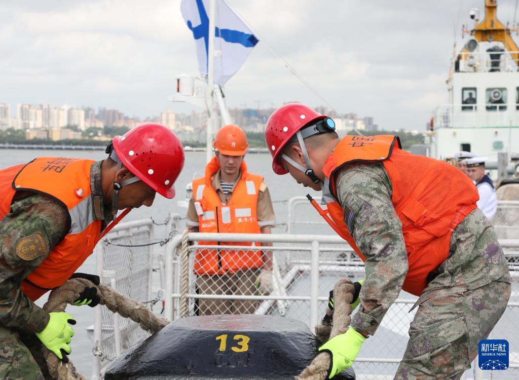 上午9時30分開始,中方海上艦艇編隊指揮艦、導(dǎo)彈驅(qū)逐艦?zāi)蠈幣灺氏入x港,俄“響亮”號、“凜冽”號護(hù)衛(wèi)艦及“伊爾庫特”號油船在中方拖船和軍港保障人員的配合下,依次駛離碼頭,中方導(dǎo)彈護(hù)衛(wèi)艦咸寧艦、大理艦也接續(xù)離開。隨后中俄艦艇組成單縱隊駛向任務(wù)海域。航渡期間,聯(lián)合導(dǎo)演部按照實戰(zhàn)化要求,通過臨機(jī)導(dǎo)調(diào)強(qiáng)化中俄雙方指揮融合度、行動聯(lián)合度。
