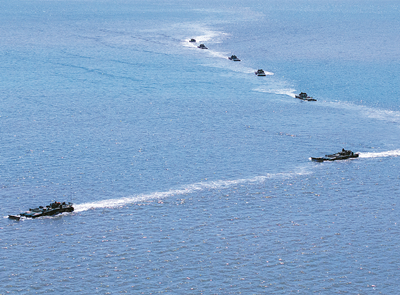 7月中旬,陸軍某旅組織兩棲裝甲車海上訓(xùn)練。
