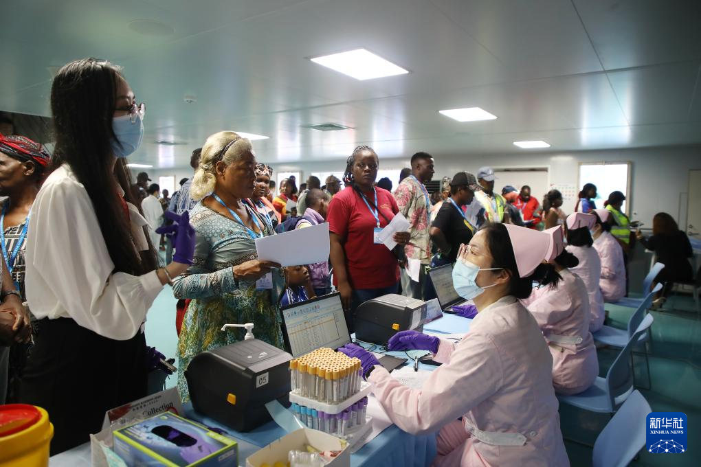 10月9日,中國(guó)海軍“和平方舟”號(hào)醫(yī)院船在喀麥隆開(kāi)展醫(yī)療服務(wù)。