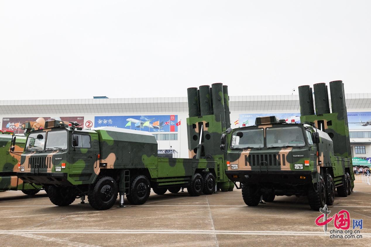 在本屆航展上,我國(guó)新一代的地空導(dǎo)彈武器系統(tǒng)紅旗-19第一次亮相中國(guó)航展。據(jù)現(xiàn)場(chǎng)簡(jiǎn)介,紅旗-19地空導(dǎo)彈武器系統(tǒng)主要用于對(duì)彈道導(dǎo)彈類目標(biāo)實(shí)施區(qū)域攔截,具有作戰(zhàn)保護(hù)區(qū)覆蓋范圍大、突防對(duì)抗能力強(qiáng)等特點(diǎn)。