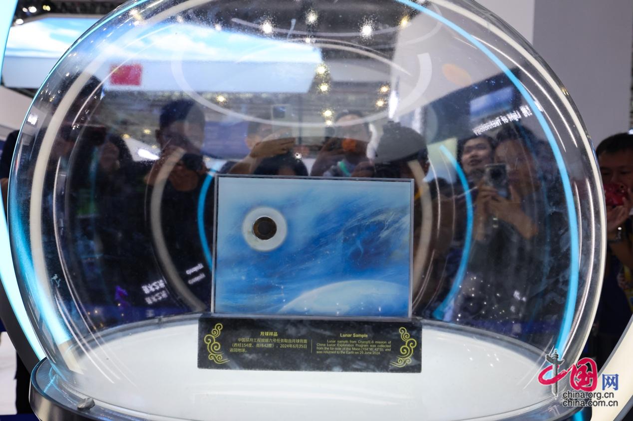 11月13日,月壤樣品展臺(tái)吸引眾多觀眾圍觀。中國(guó)網(wǎng)記者 董寧 攝影