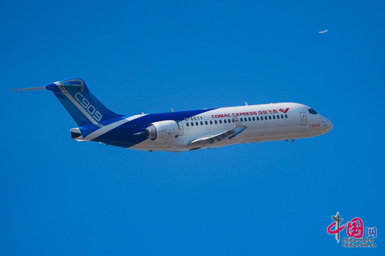 圖為C909在第十五屆中國(guó)航展開幕式上進(jìn)行飛行表演 中國(guó)網(wǎng)記者 董寧 攝影