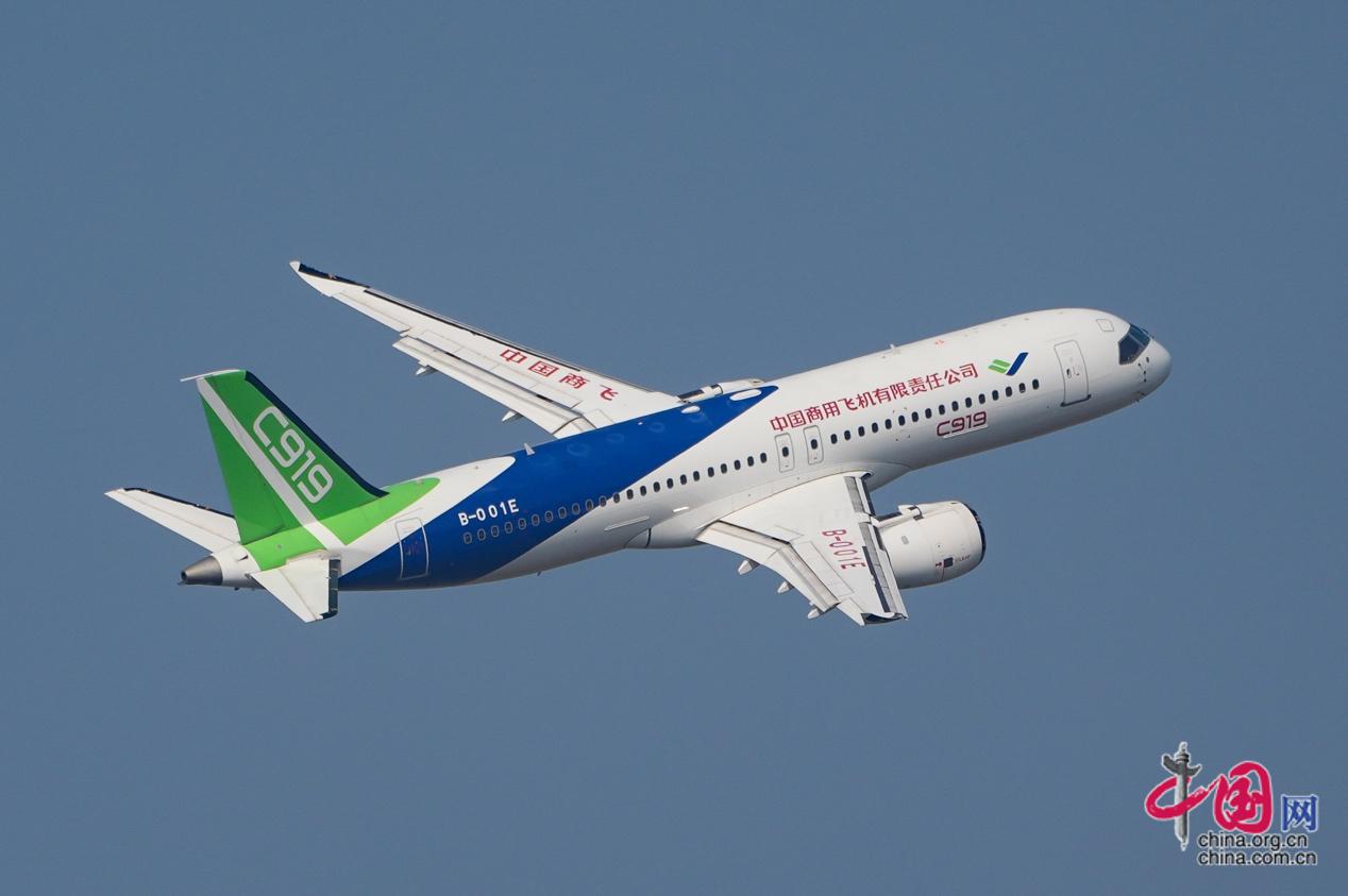 圖為C919在第十五屆中國(guó)航展開幕式上進(jìn)行飛行表演。中國(guó)網(wǎng)記者 董寧 攝影