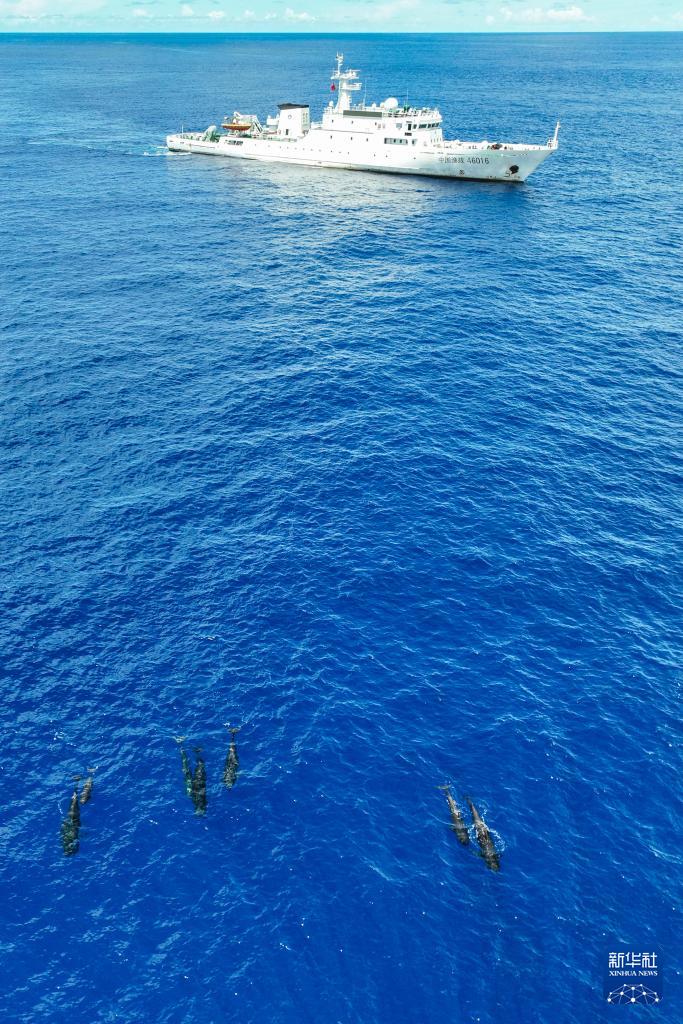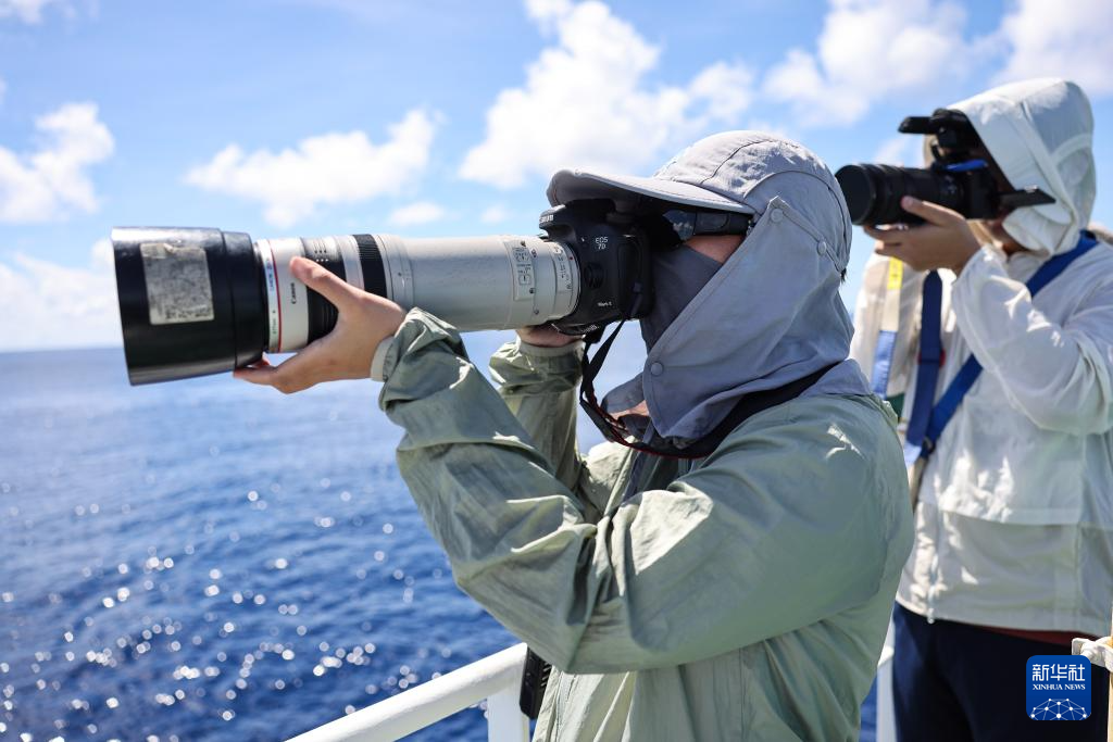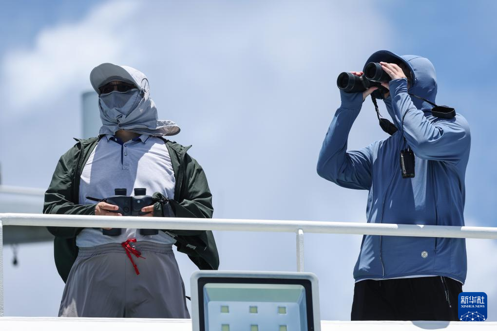 7月5日,在海南島東部海域,考察團(tuán)隊(duì)成員在甲板上觀測(cè)。