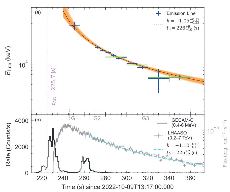 GRB 221009A的譜線能量隨時(shí)間以冪律演化。(中國科學(xué)院高能物理研究所供圖)