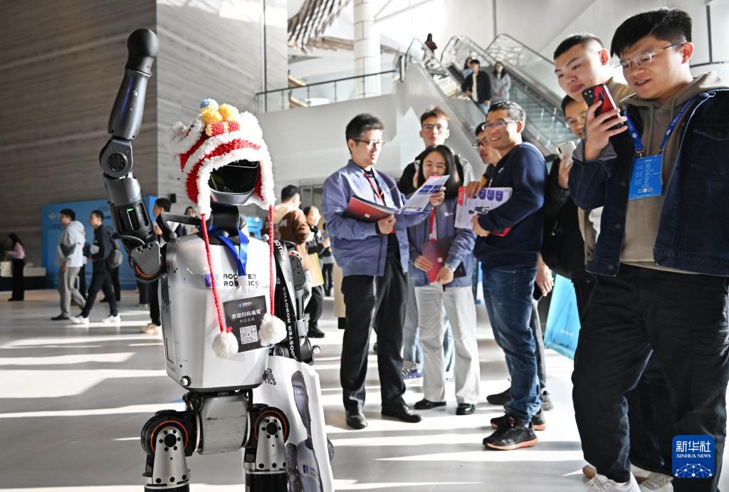 11月2日,與會(huì)者在2024中國自動(dòng)化大會(huì)展覽區(qū)與智能機(jī)器人互動(dòng)。