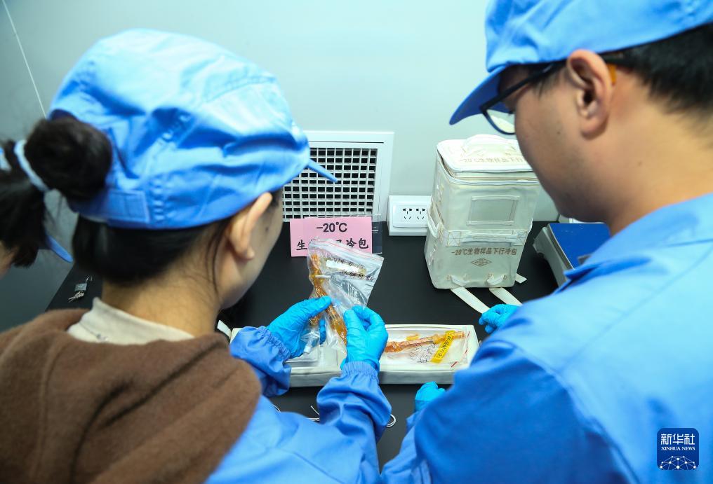 11月4日,在位于北京的中國(guó)科學(xué)院空間應(yīng)用工程與技術(shù)中心,工作人員檢查返回實(shí)驗(yàn)樣品轉(zhuǎn)運(yùn)包狀態(tài)。