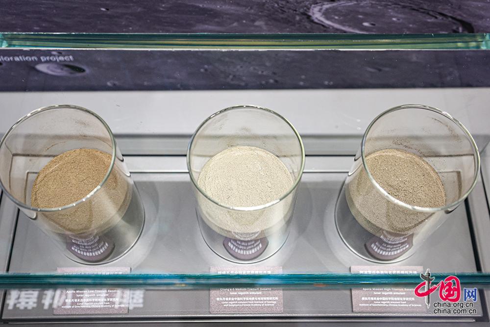 12月28日,“問月——中國探月工程嫦娥五號(hào)月球樣品展”在北京天文館B館一層展廳拉開帷幕。圖為模擬月壤。中國網(wǎng)記者 倫曉璇 攝