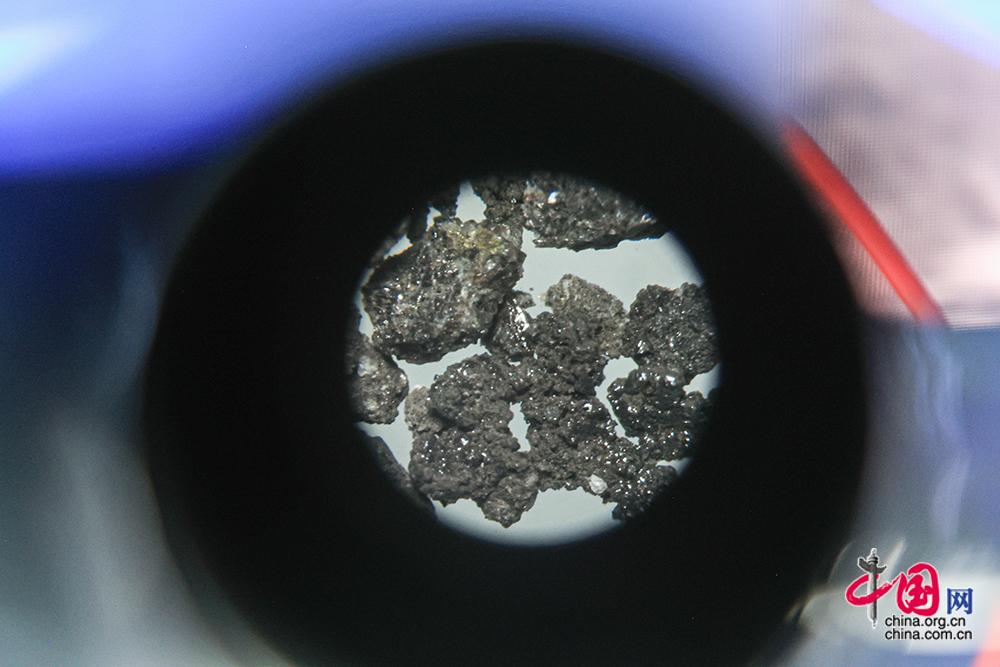 12月28日,“問月——中國探月工程嫦娥五號(hào)月球樣品展”在北京天文館B館一層展廳拉開帷幕。圖為嫦娥五號(hào)月球樣品。中國網(wǎng)記者 倫曉璇 攝