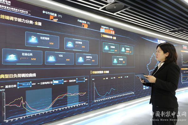 工作人員通過國(guó)家電網(wǎng)智慧車聯(lián)網(wǎng)平臺(tái)監(jiān)測(cè)負(fù)荷聚合調(diào)控情況。受訪者供圖