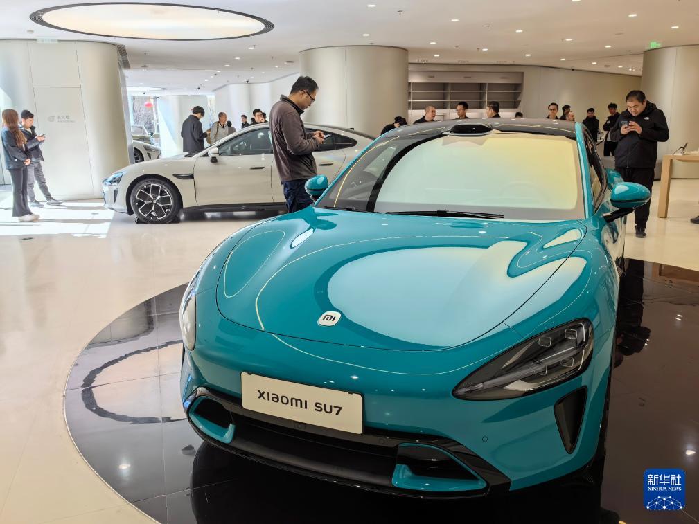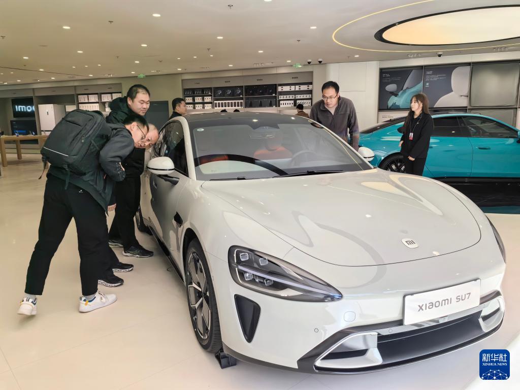 3月28日,在北京一家小米汽車零售門店內(nèi),消費(fèi)者在了解小米SU7汽車。