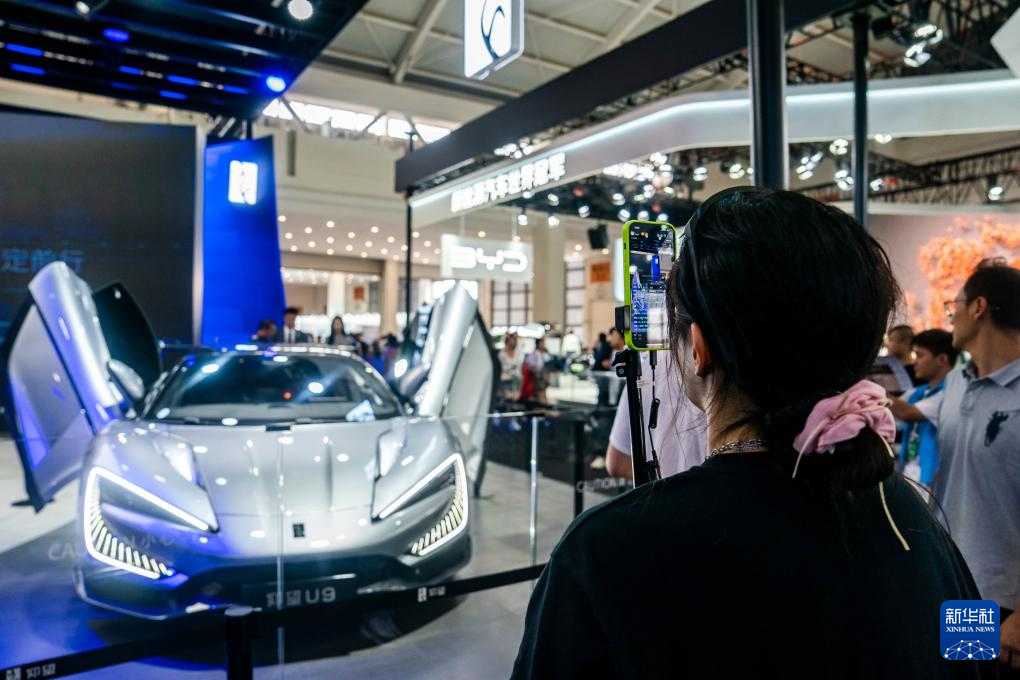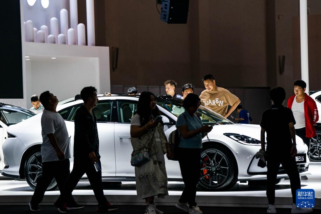 6月27日,人們?cè)诘?5屆中國(guó)(昆明)國(guó)際汽車(chē)博覽會(huì)上參觀展車(chē)。