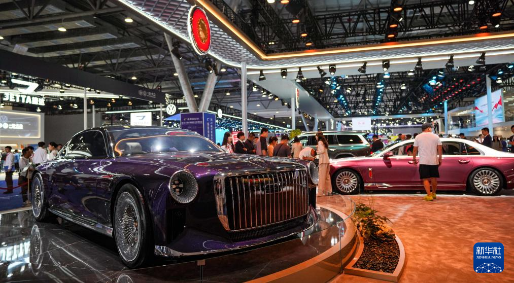 7月13日,觀眾在第21屆長(zhǎng)春國(guó)際汽車(chē)博覽會(huì)的紅旗品牌展區(qū)參觀。