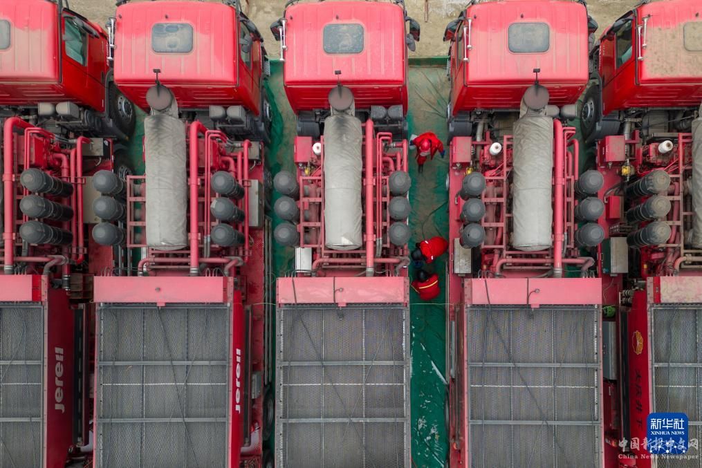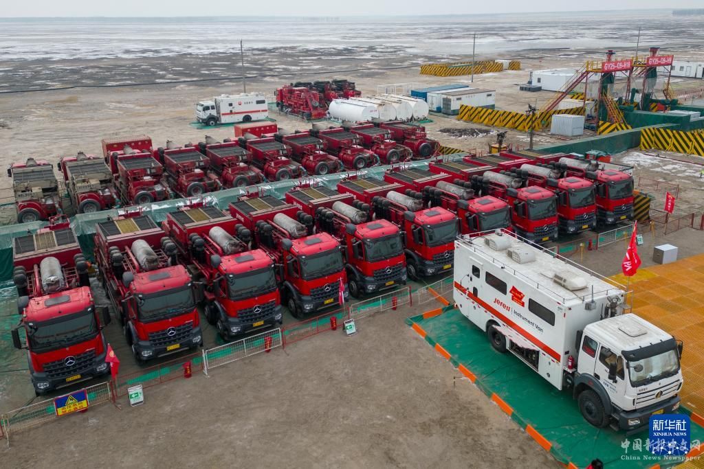 這是1月4日拍攝的大慶古龍頁巖油一號試驗(yàn)區(qū)頁巖油壓裂作業(yè)現(xiàn)場(無人機(jī)照片)。