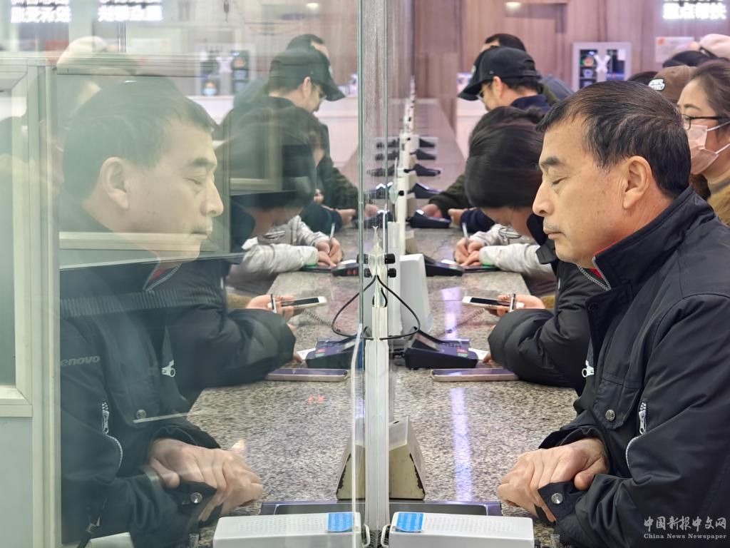 呂興明(左二)正在售票窗口購票。新華社記者 謝佼 攝