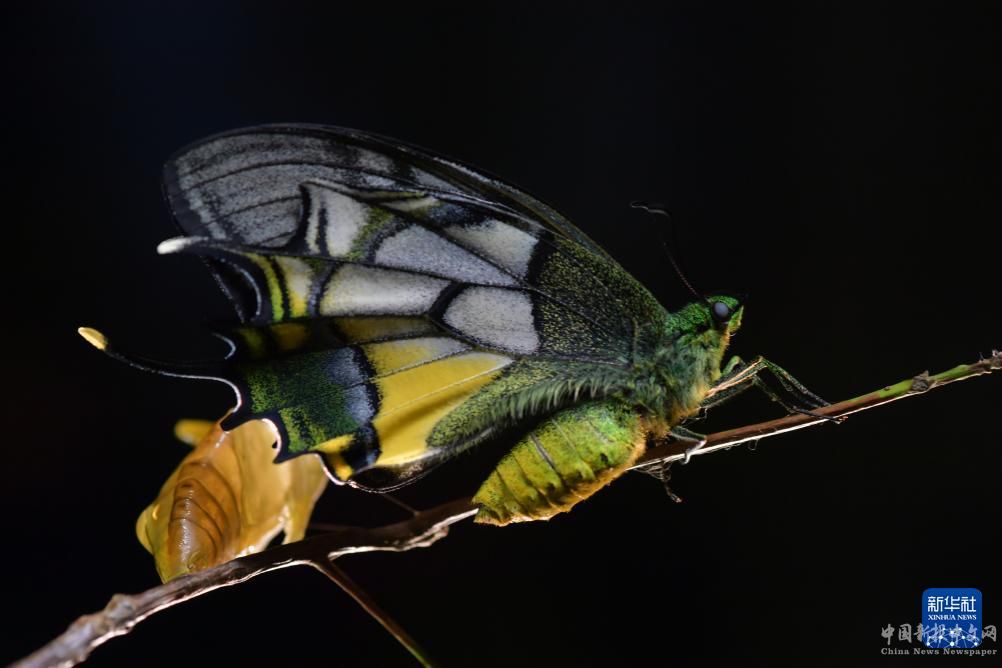 這是金斑喙鳳蝶雌蝶羽化(資料圖片)。