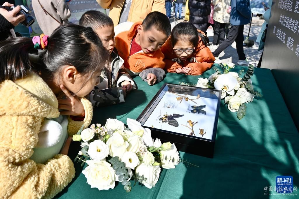 3月3日,小朋友觀看金斑喙鳳蝶蝶蛹生活史標(biāo)本。
