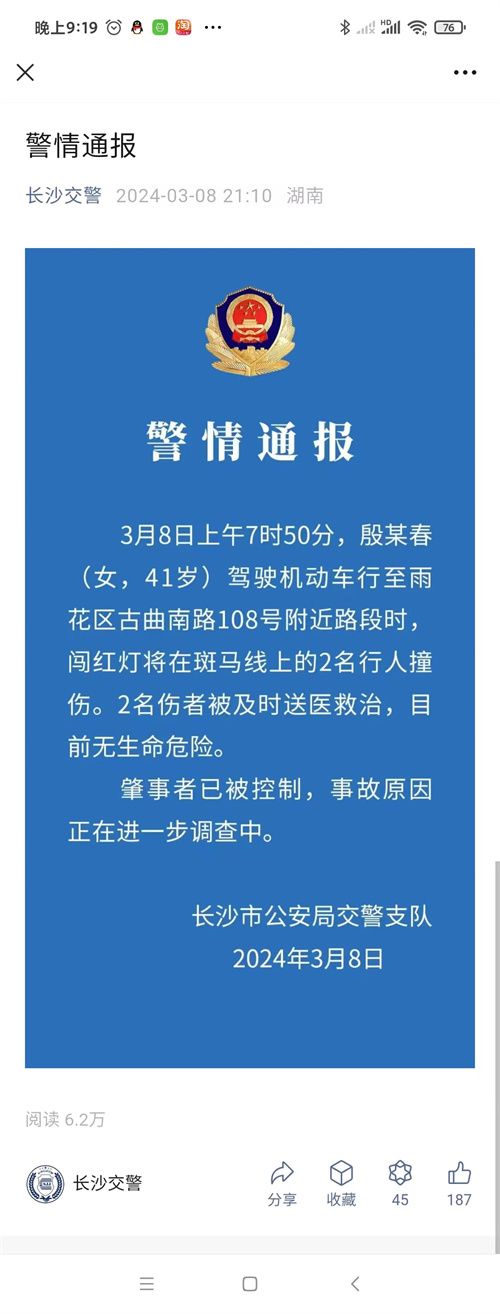 中國新報湖南訊(記者 陳斌  文/圖)3月8日早晨8時左右,在長沙市古曲南路發(fā)生一起慘劇:學 校大門不遠處的紅綠燈:在交警的指揮下,多名小學生準備通過馬路中間的隔 離墩,到百米開外的雨花區(qū)砂子塘吉聯(lián)小學上學,就在這些小孩沿著斑馬線, 井然有序地通過隔離墩,突然,一輛白色的寶馬小車沖了過來,隨著一陣慘叫 ,兩名學生被撞飛,此時,肇事小車繼續(xù)往前沖,直到被其他車輛攔停。