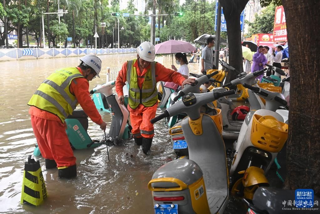 5月19日,工作人員在南寧東葛路開(kāi)展排水作業(yè)。