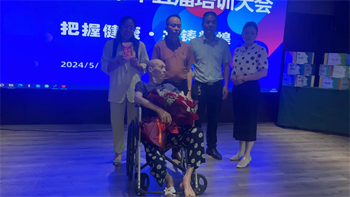 本次培訓(xùn)主辦方中健鼻炎研究院的領(lǐng)導(dǎo)們知道情況后,大為感動,不僅前去探望辜美榮老人,還決定開啟“培訓(xùn)會特別專場”:讓這對父女走上講臺,分享感人的故事。