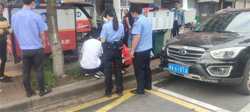 女民警聯系男子的家屬,得知男子家住芙蓉區(qū)東屯渡街道,考慮到男子駕駛電動車很危險,民警決定用警車載男子回家。