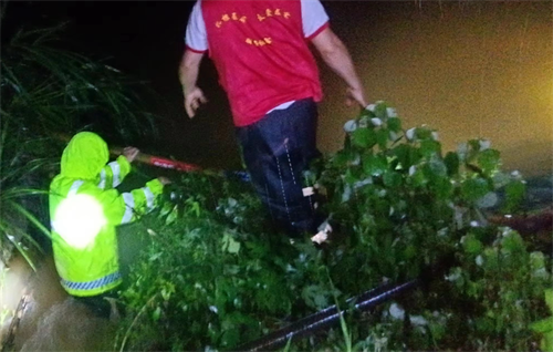 在收到值守人員報送的險情后,饒村村聯(lián)村干部徐粟軍與村干部立即趕到現(xiàn)場察看險情,當時水位距離壩頂不到1米。有著20多年搶險救援經(jīng)驗的消防退伍老兵、應(yīng)急辦主任劉細光發(fā)現(xiàn)水面漂浮物導致溢洪道出水不暢,毫不猶豫地跳入溢洪道內(nèi),不斷清理出雜物。半小時后,溢洪道出水速度明顯加快。