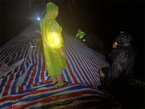 隨后,他與鎮(zhèn)村干部一道,在大壩路面和大壩背面鋪設(shè)彩條布,用沙袋加以固定,不到10分鐘,筑起了一道人工防線。因處置及時果斷,肖沖山塘水位平穩(wěn)下降,險情得到有效處置。