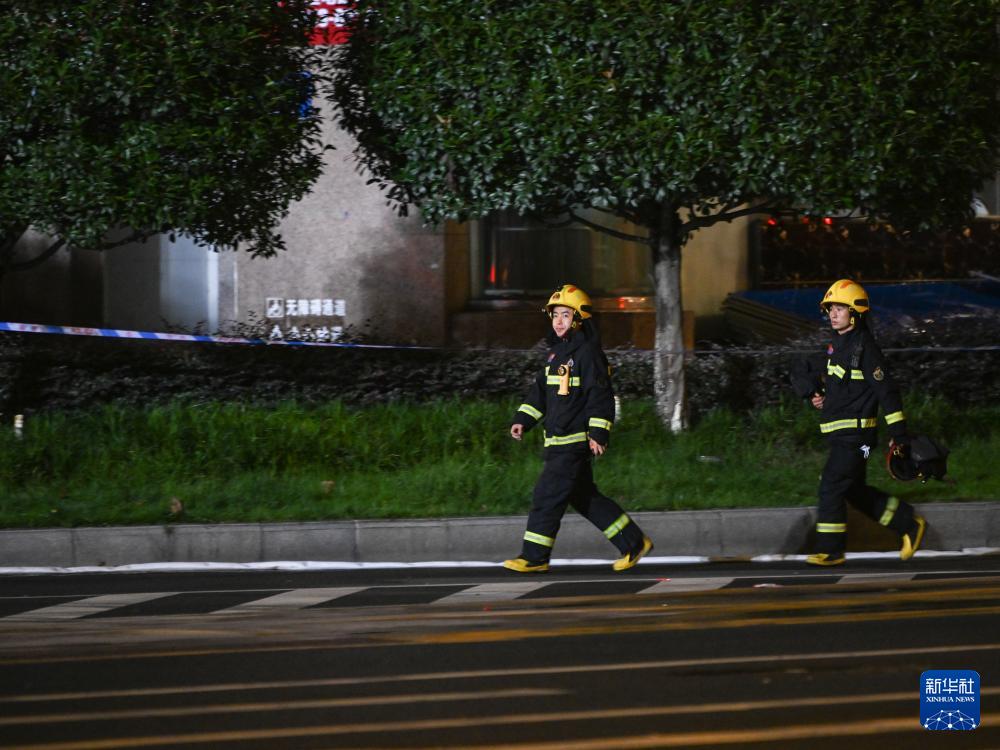 7月18日凌晨,消防救援人員在四川省自貢市“7·17”火災事故現(xiàn)場開展救援工作。新華社記者 王曦 攝