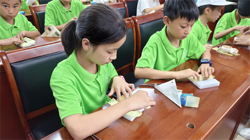 志愿者結(jié)合古代學(xué)堂場景演繹和游戲“飛花令”,介紹花中的四君子“梅蘭竹菊”,打造了一堂古香古色的生物科普課。團(tuán)隊(duì)引領(lǐng)孩子親手制作漆扇,傳承文化,鍛煉手藝。“以漢服、游戲、扇子融入生物科普,創(chuàng)新教學(xué),讓知識更生動,也讓我體會到了科普教育的重要意義。”志愿者李湘連說。