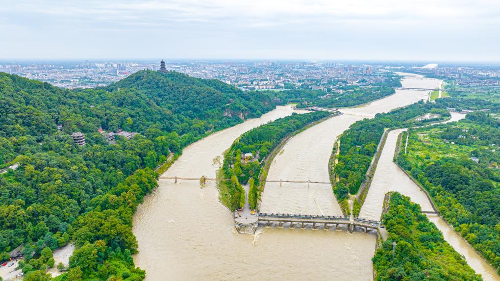 據(jù)介紹,25日凌晨4時(shí)左右洪峰過境時(shí),都江堰渠首管理處水閘管理站將渠首閘群21孔閘門按照預(yù)案全面開啟,讓洪水沿這座千年水利工程自然下泄。