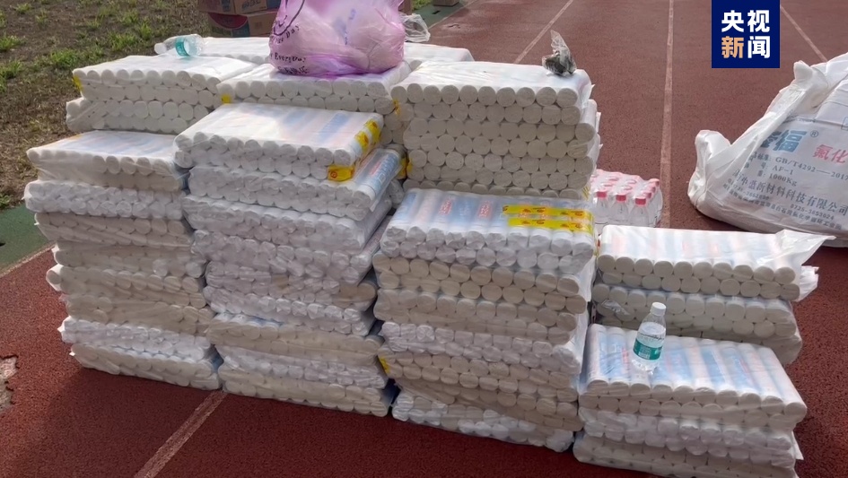 直升機(jī)上裝載了飲用水、大米、方便面、蔬菜、油等生活物資,可滿足13200人的物資需求。