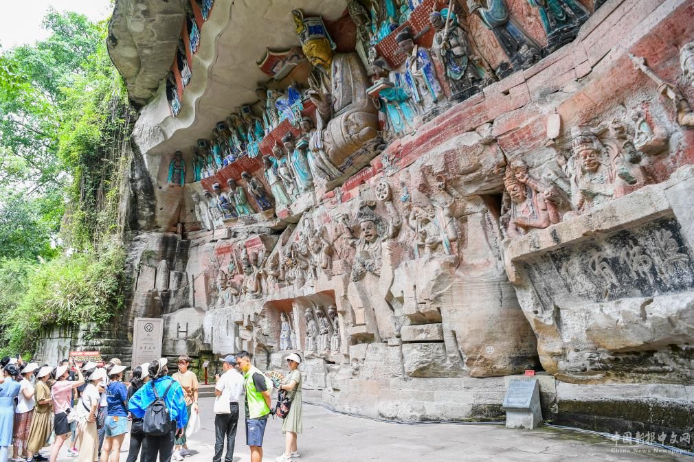 游客在大足石刻景區(qū)游覽。新華社記者 王全超 攝