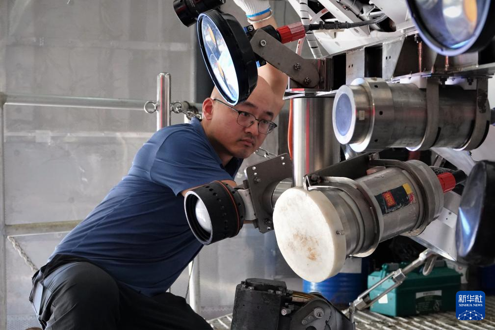 8月29日,“蛟龍?zhí)?rdquo;大深度下潛前日,“蛟龍?zhí)?rdquo;運維保障工程師王向鑫檢查“蛟龍?zhí)?rdquo;搭載的作業(yè)工具。
