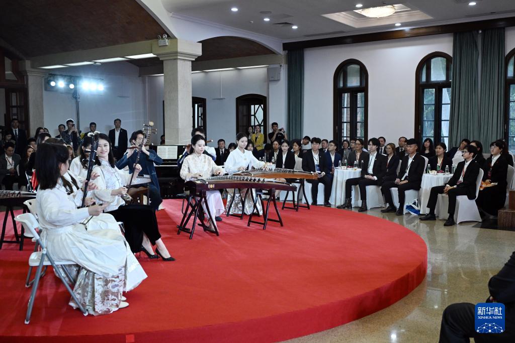 4月3日,兩岸學生在觀看中山大學學生表演。