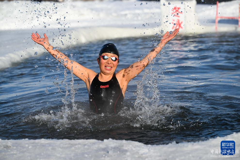 1月18日,市民在呼倫貝爾市伊敏河冬泳健身。