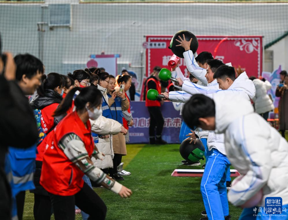 1月18日,在呼倫貝爾學(xué)院體育館內(nèi),“十四冬”志愿者參加趣味體能比賽。