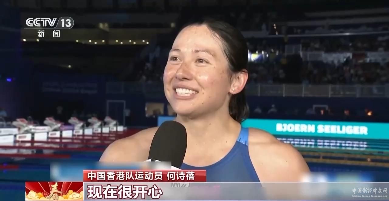 中國香港隊運動員 何詩蓓:現(xiàn)在很開心,因為這是我第一個長池的(世錦賽)冠軍,所以我很開心。雖然時間不是特別快,但是為中國香港拿到這面金牌是一件很值得慶祝的事。