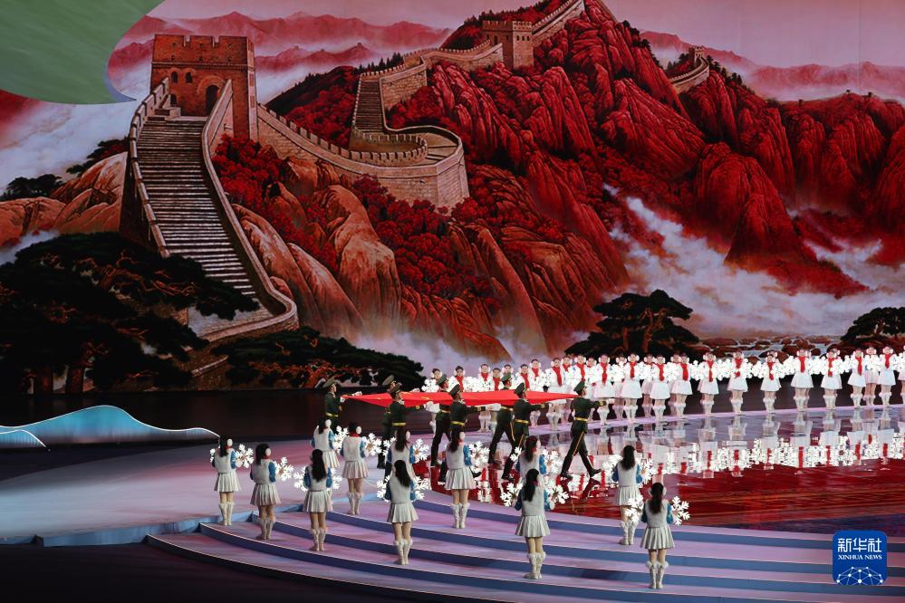 2月17日,中華人民共和國國旗在開幕式上入場。新華社記者 黃偉 攝