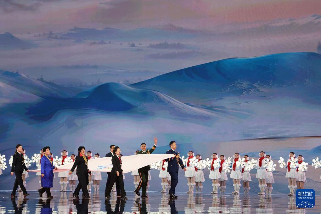 當(dāng)晚,第十四屆全國冬季運(yùn)動會開幕式在內(nèi)蒙古呼倫貝爾市海拉爾區(qū)內(nèi)蒙古冰上運(yùn)動訓(xùn)練中心舉行。