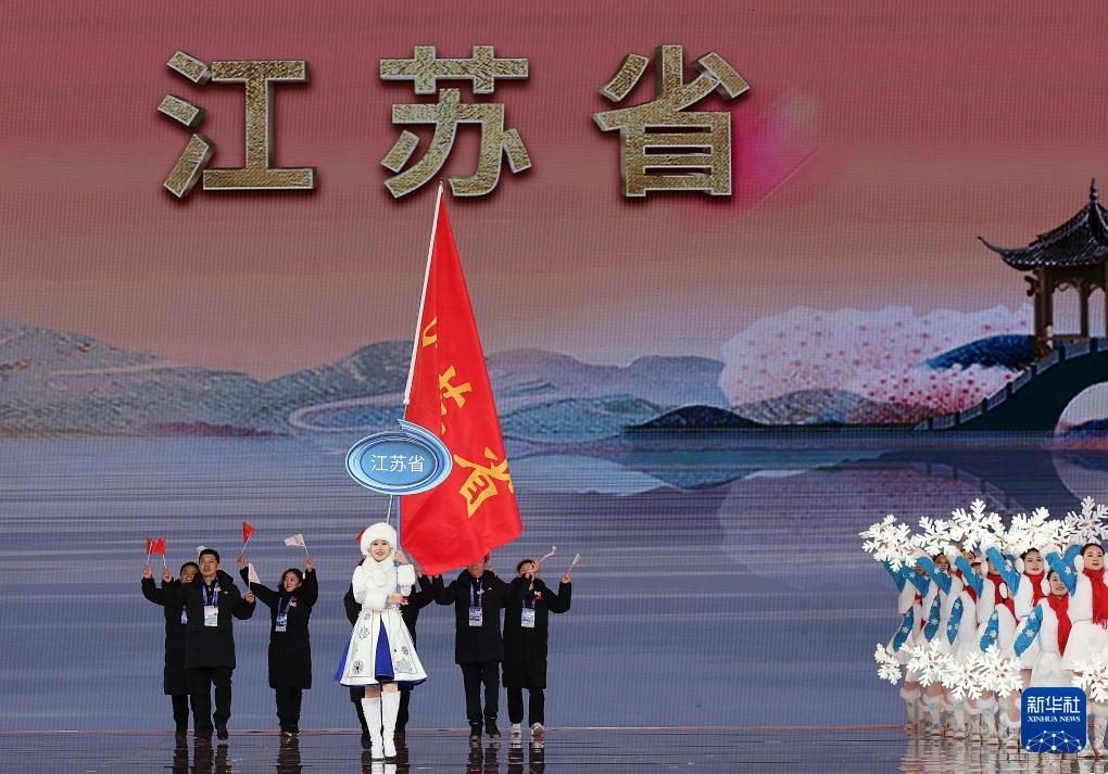 2月17日,江蘇省體育代表團(tuán)在開幕式上入場。新華社記者 李博 攝