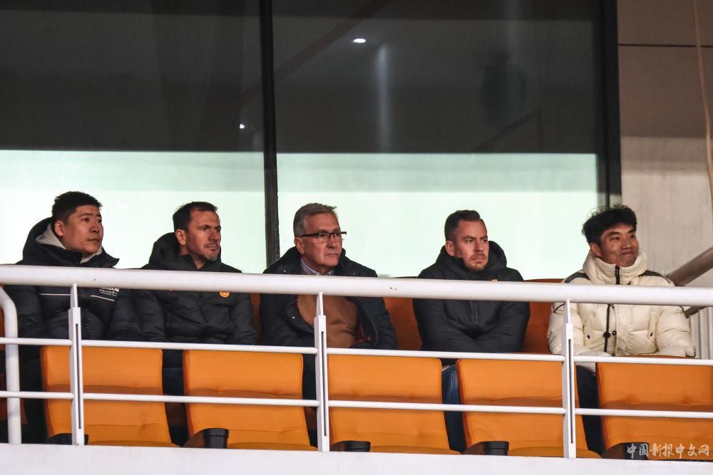 3月6日,中國國家男子足球隊(duì)主教練伊萬科維奇(中)在2023-2024賽季亞冠聯(lián)賽四分之一決賽首回合現(xiàn)場(chǎng)觀看比賽。新華社記者 朱崢 攝
