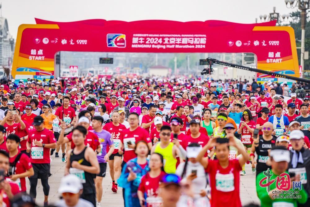 4月14日,2024北京國際長跑節(jié)——北京半程馬拉松在天安門廣場鳴槍起跑,本次賽事參賽選手超20000人。中國網(wǎng)記者 鄭亮攝