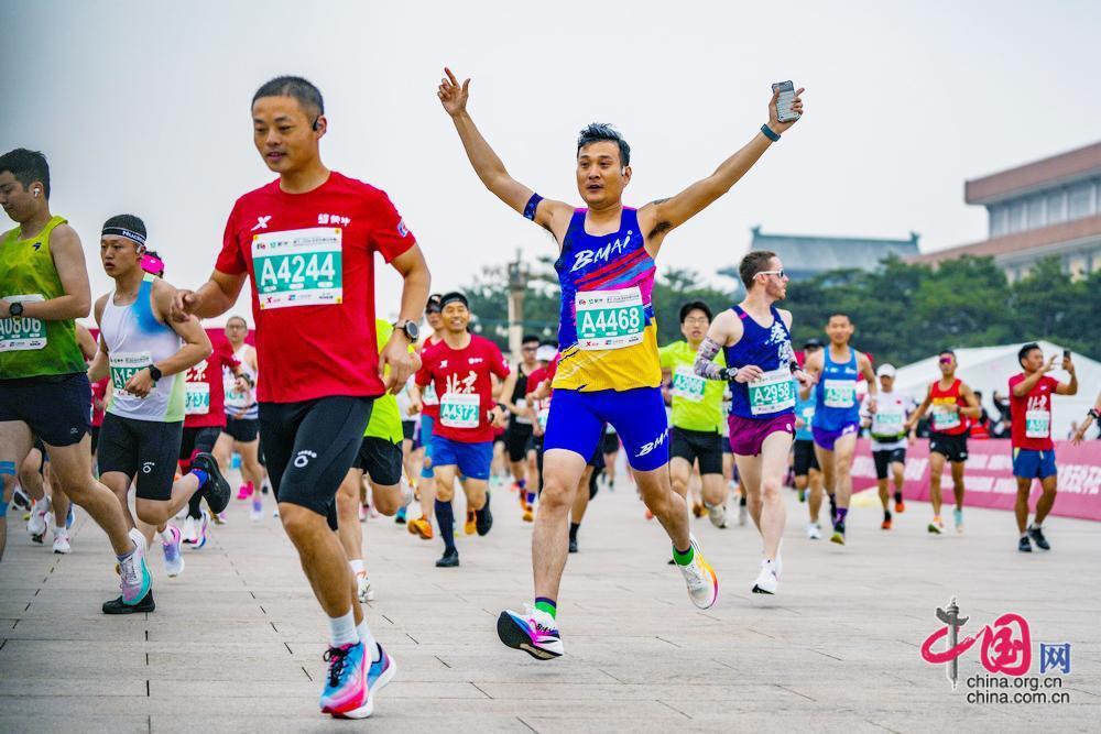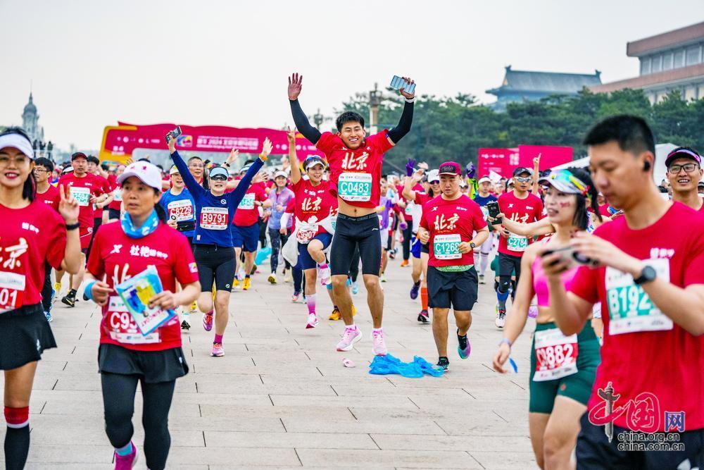 本次2024年北京國際長跑節(jié)——北京半程馬拉松在天安門廣場起跑,終點設(shè)在奧林匹克公園中心區(qū)慶典廣場,共21.0975公里。參賽選手20000余人。中國網(wǎng)記者 鄭亮攝