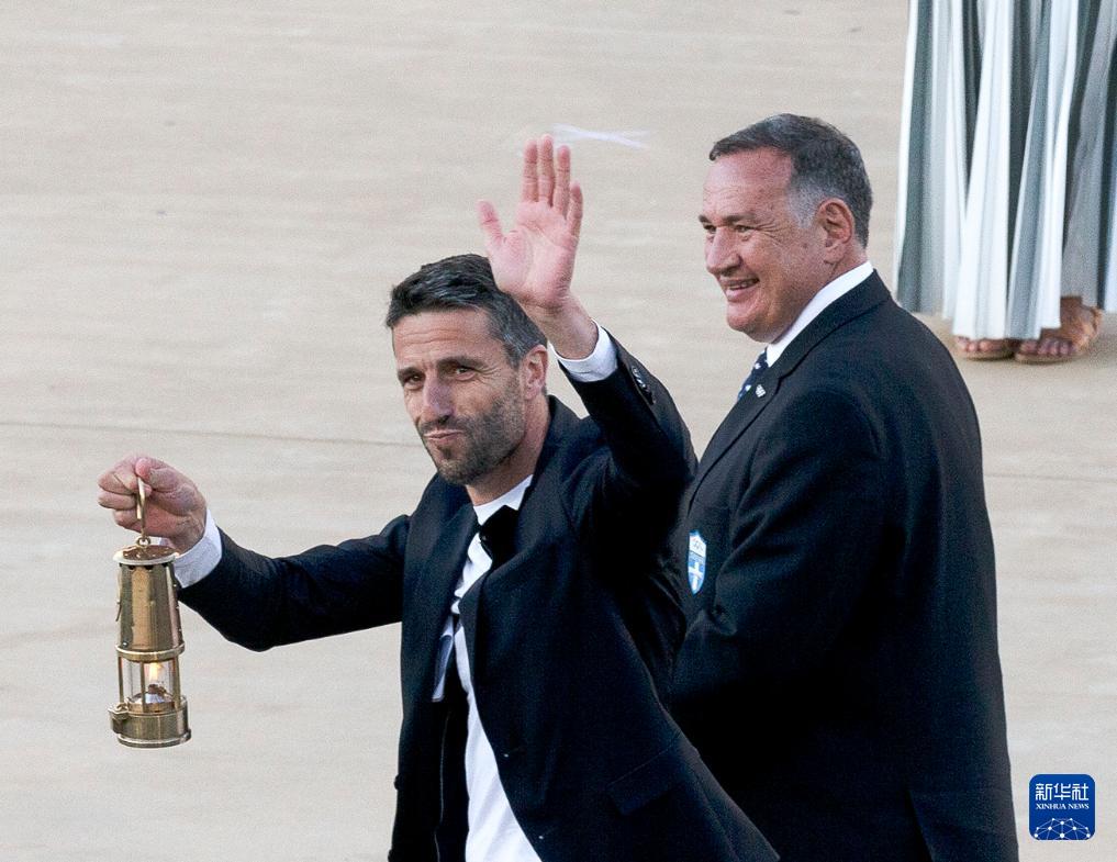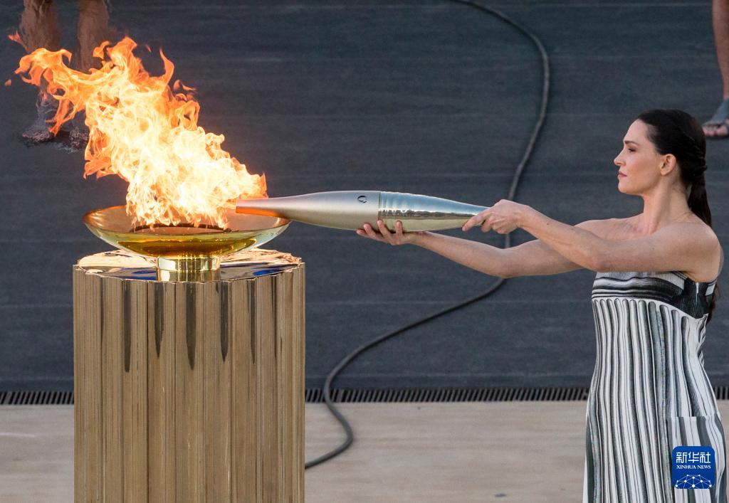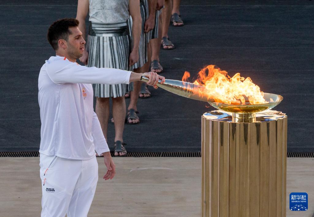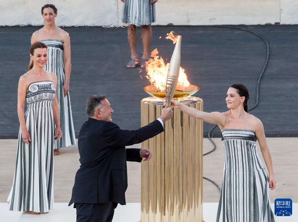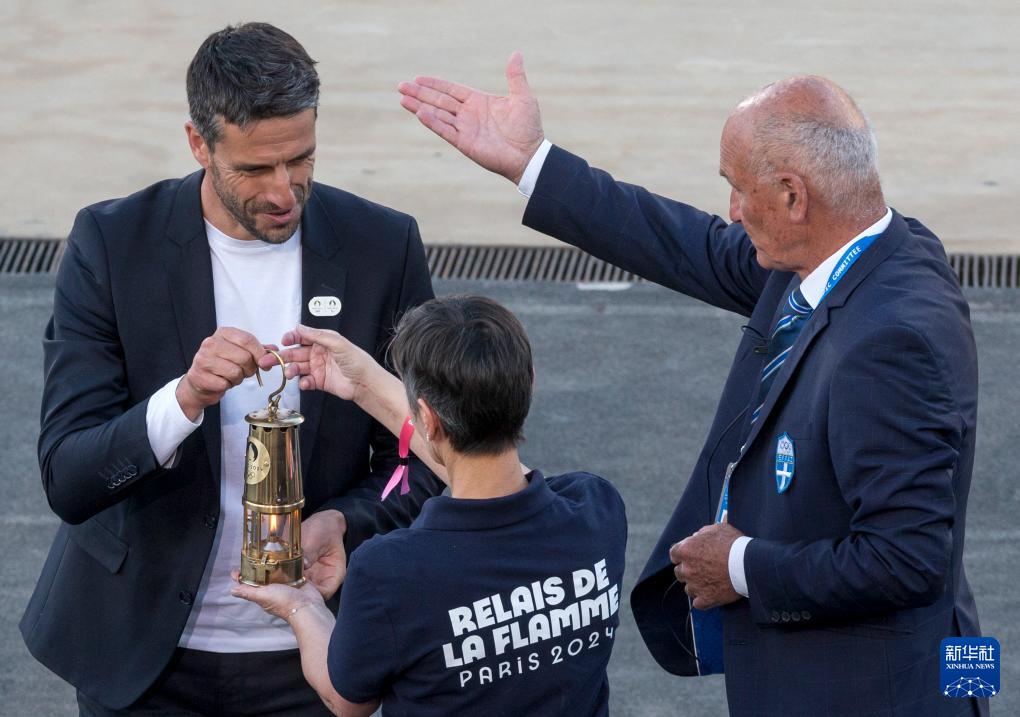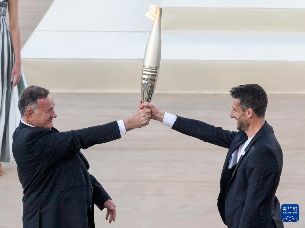 當日,巴黎奧運會火種在希臘首都雅典帕納辛奈科體育場,由希臘奧委會正式交給巴黎奧組委,巴黎奧組委主席托尼·埃斯坦蓋從希臘奧委會主席卡普拉洛斯手中接過奧運火炬。