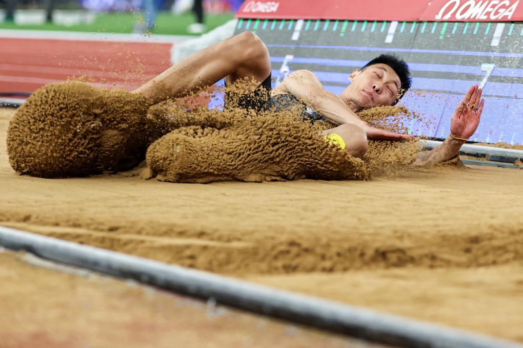 4月27日,中國選手王嘉男在男子跳遠決賽中。新華社記者 李博 攝