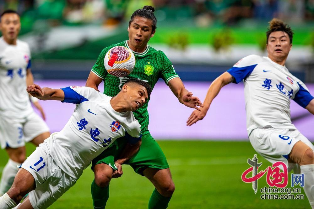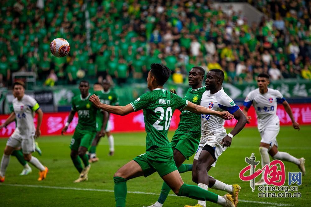 5月11日,2024賽季中超聯(lián)賽進行第11輪,北京國安隊在主場以3比2逆轉(zhuǎn)梅州客家隊,豪取五連勝。圖為雙方球員場上拼搶。中國網(wǎng)記者 鄭亮 攝影