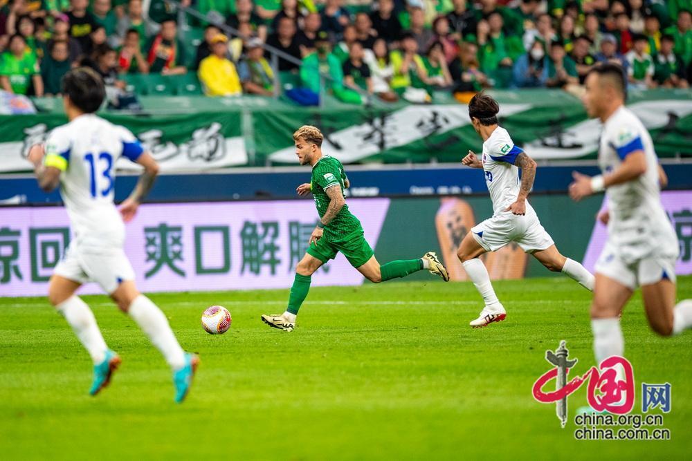 5月11日,2024賽季中超聯(lián)賽進行第11輪,北京國安隊在主場以3比2逆轉(zhuǎn)梅州客家隊,豪取五連勝。圖為北京國安隊隊員邊線傳中。中國網(wǎng)記者 鄭亮 攝影